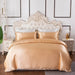Den guldglittrande sidenimitationen skapar en hotellkänsla direkt i ditt eget sovrum. Tyget har en naturlig temperaturreglerande förmåga som håller dig sval under varma sommarnätter och behagligt varm under kyligare perioder. Det hypoallergena materialet är perfekt för känslig hud och minskar risken för hudirritationer. Den eleganta guldfärgen är tidlös och passar utmärkt i både moderna och klassiska inredningsstilar.