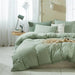 Våra storlekar är anpassade för att passa perfekt på svenska täcken och kuddar. Den minsta storleken 168 x 229 cm är idealisk för enkelsängar eller ungdomssängar, medan de större storlekarna passar utmärkt för dubbelsängar. Varje set inkluderar matchande örngott som kompletterar den gröna färgen perfekt. Generösa mått säkerställer att täcket hålls på plats hela natten för optimal komfort.